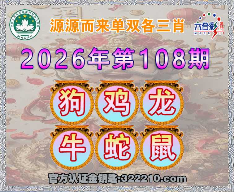 108期:『源源而来』 🥽单双各三肖🥽【.鸡.龙.牛.蛇.鼠】开:狗45
