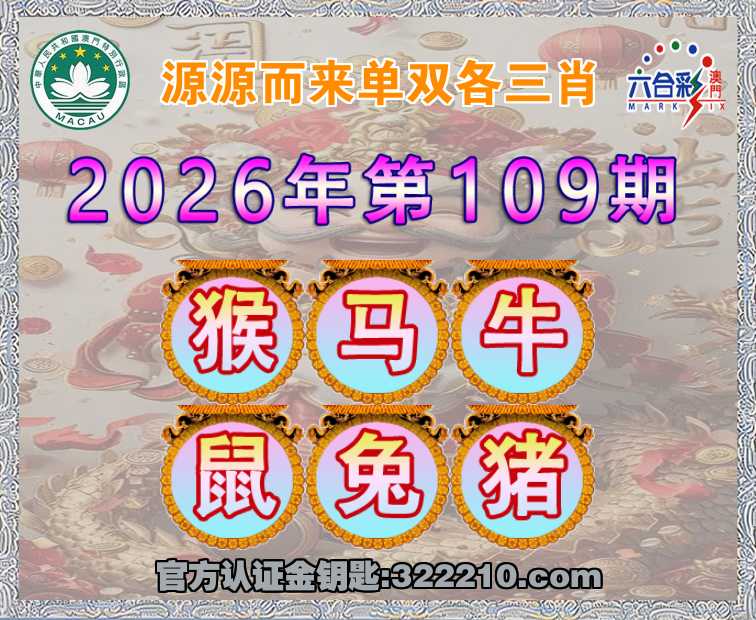 109期:『源源而来』 🥽单双各三肖🥽【猴.马.牛.鼠..猪】开:兔16