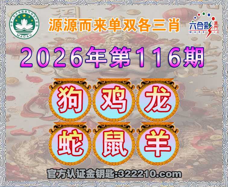 116期:『源源而来』 🥽单双各三肖🥽【狗..龙.蛇.鼠.羊】开:鸡22