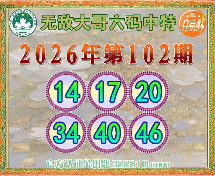 102期: 🌳《无敌大哥》 🌳六码中特🌳【14.17.20.34.40.46】开:20