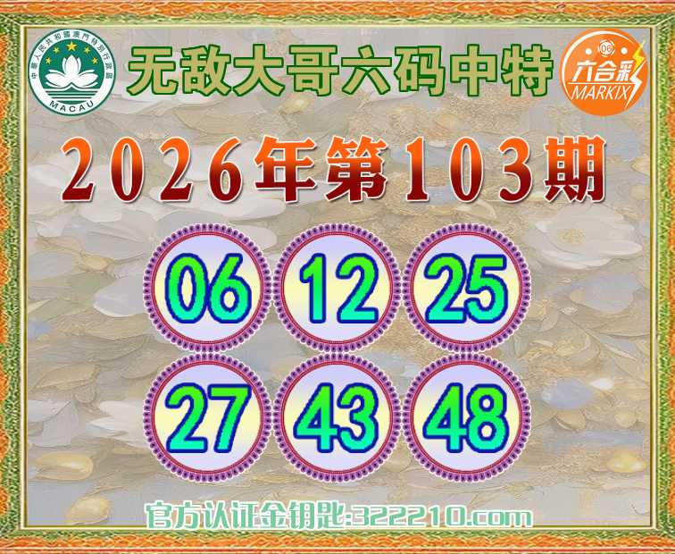 103期: 🌳《无敌大哥》 🌳六码中特🌳【06.12.25.27.43.48】开:06
