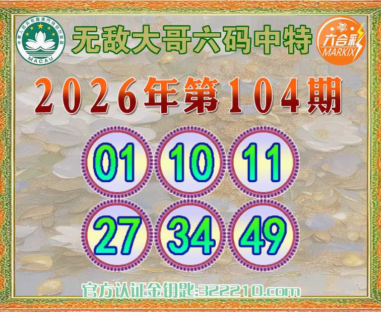 104期: 🌳《无敌大哥》 🌳六码中特🌳【01.10.11.27.34.49】开:01