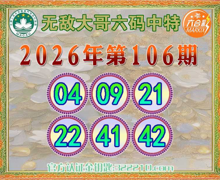 106期: 🌳《无敌大哥》 🌳六码中特🌳【04.09.21.22.41.42】开:22