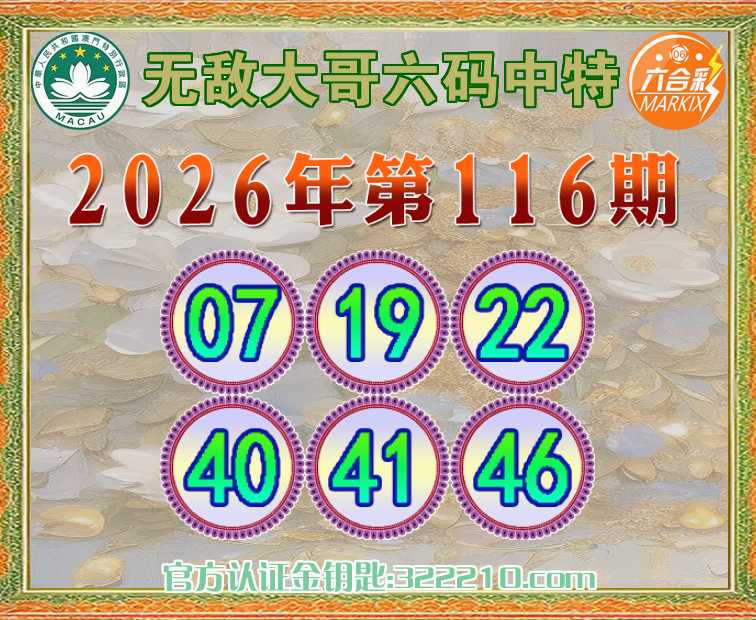116期: 🌳《无敌大哥》 🌳六码中特🌳【07.19.22.40.41.46】开:22