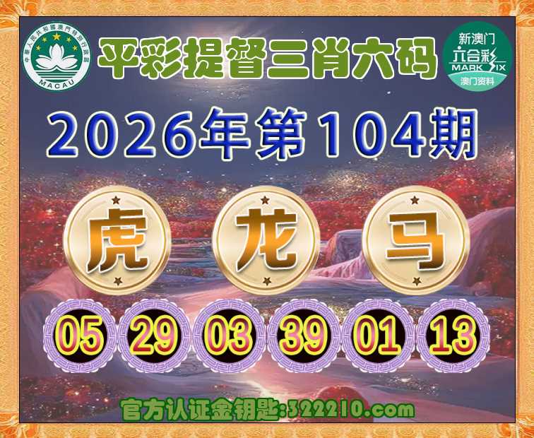 104期:《平彩提督》 💄三肖六码💄【虎龙】开:马01