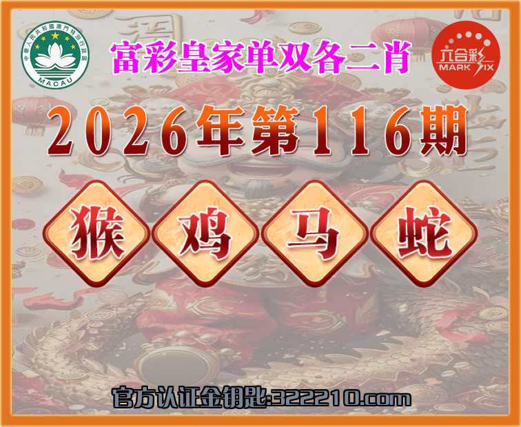 116期:『富彩皇家』 👑单双各二肖👑【猴..马.蛇】开:鸡22