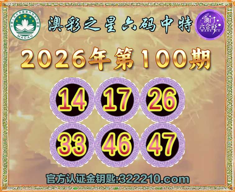 100期:《澳彩之星》 😍六码中特😍【14.17.26.33.46.47】开:33