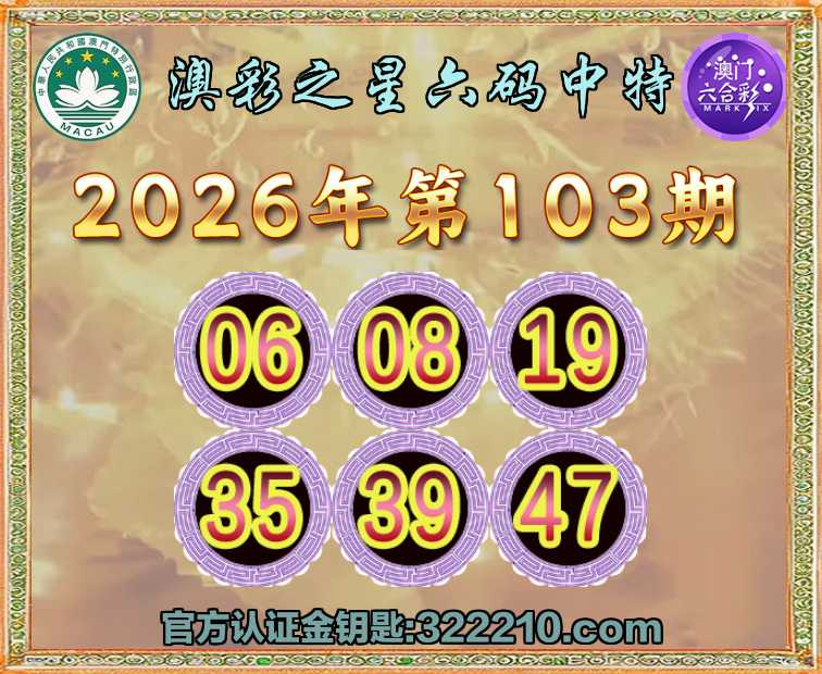 103期:《澳彩之星》 😍六码中特😍【06.08.19.35.39.47】开:06