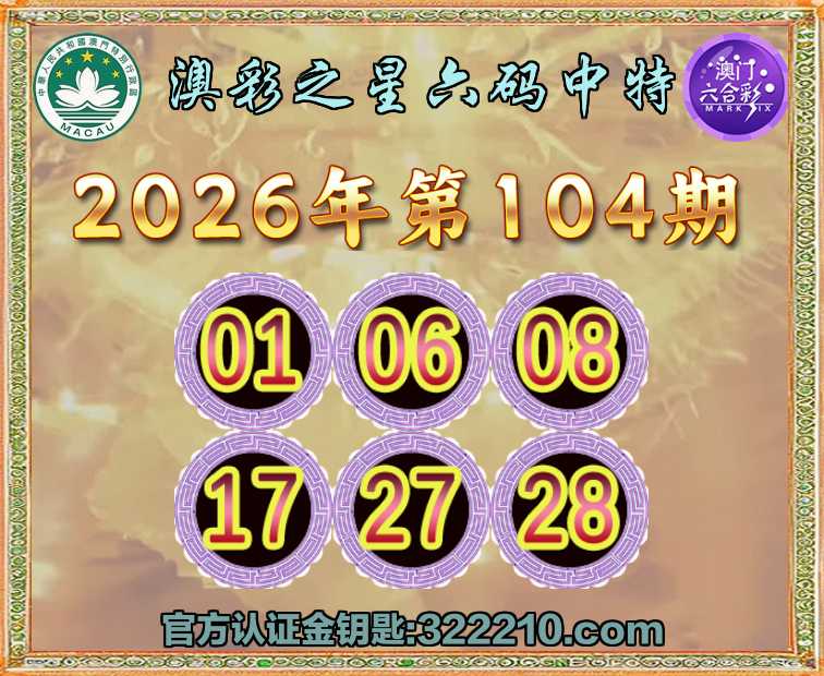 104期:《澳彩之星》 😍六码中特😍【01.06.08.17.27.28】开:01