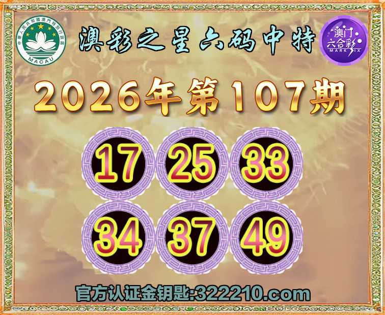107期:《澳彩之星》 😍六码中特😍【17.25.33.34.37.49】开:49