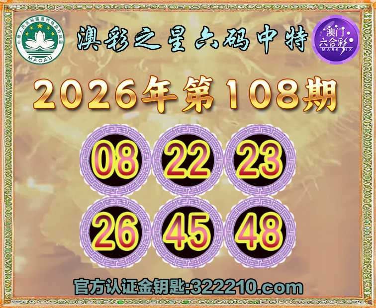 108期:《澳彩之星》 😍六码中特😍【08.22.23.26.45.48】开:45