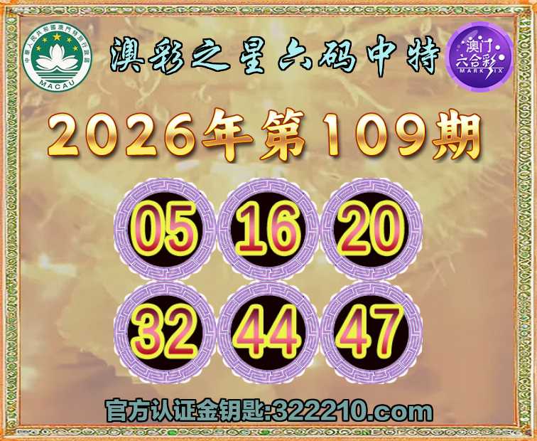 109期:《澳彩之星》 😍六码中特😍【05.16.20.32.44.47】开:16