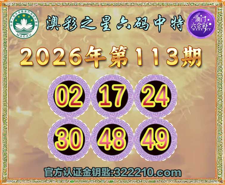 113期:《澳彩之星》 😍六码中特😍【02.17.24.30.48.49】开:02