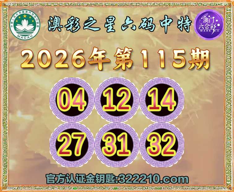115期:《澳彩之星》 😍六码中特😍【04.12.14.27.31.32】开:04