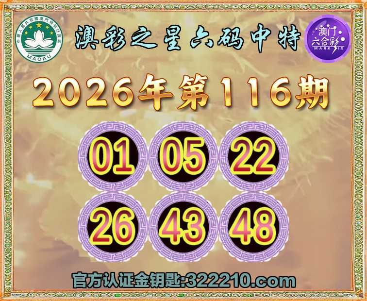 116期:《澳彩之星》 😍六码中特😍【01.05.22.26.43.48】开:22