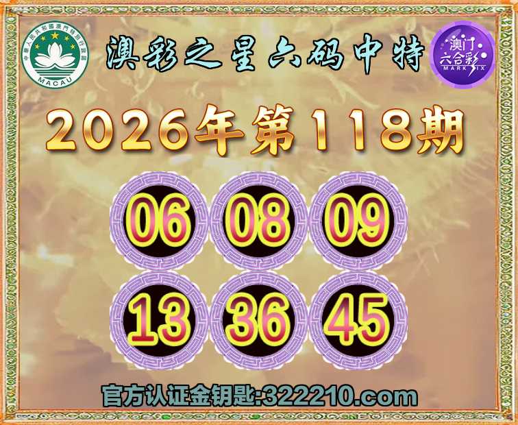 118期:《澳彩之星》 😍六码中特😍【06.08.09.13.36.45】开:08