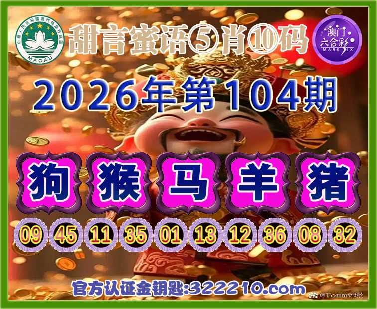 104期:《甜言蜜语》 😳⑤肖⑩码😳【狗猴羊猪】开:马01