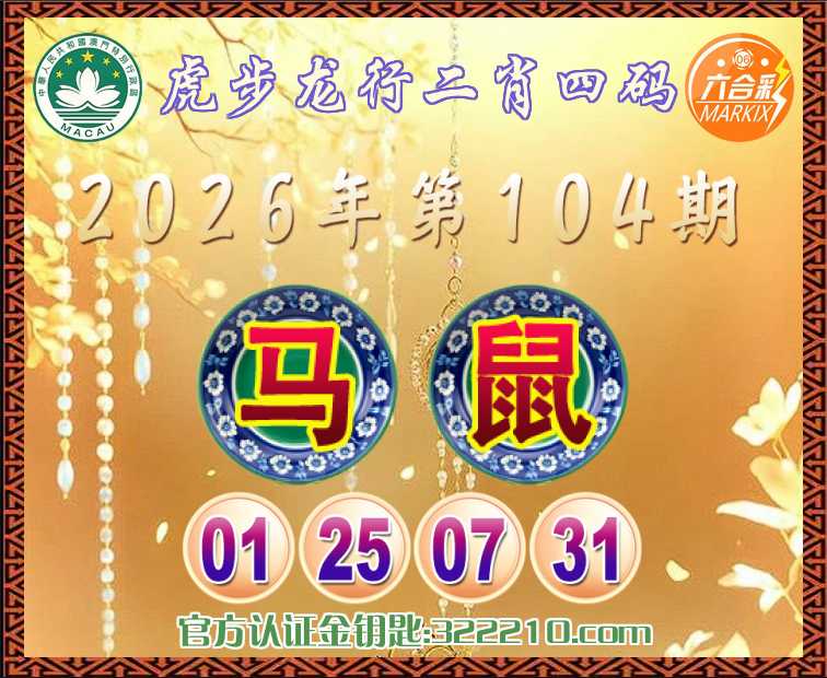 104期:〖虎步龙行〗 🌅二肖四码🌅【鼠】【01.25.07.31】开:马01
