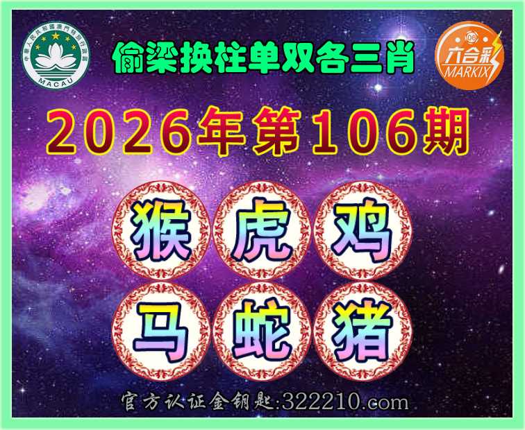 106期: 📸《偷梁换柱》 📸单双各三肖📸【猴.虎..马.蛇.猪】开:鸡22