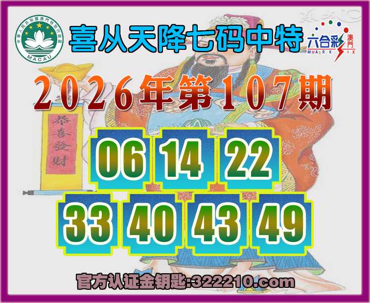 107期:【喜从天降】 ⛩️七码中特⛩️【06.14.22.33.40.43.49】开:49