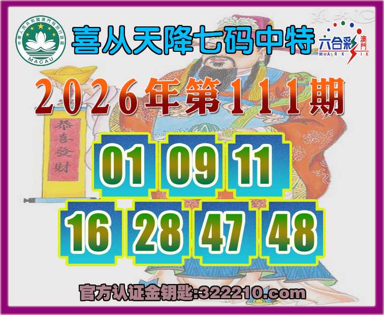 111期:【喜从天降】 ⛩️七码中特⛩️【01.09.11.16.28.47.48】开:01