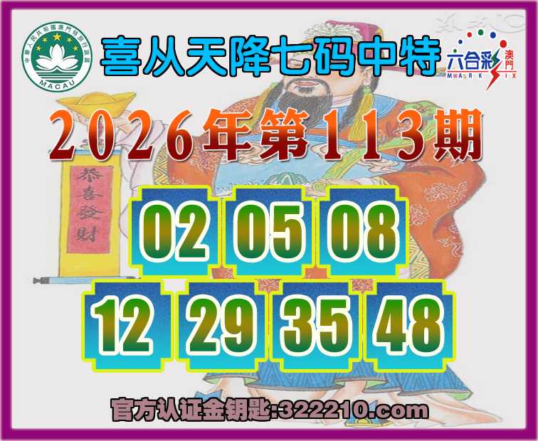 113期:【喜从天降】 ⛩️七码中特⛩️【02.05.08.12.29.35.48】开:02