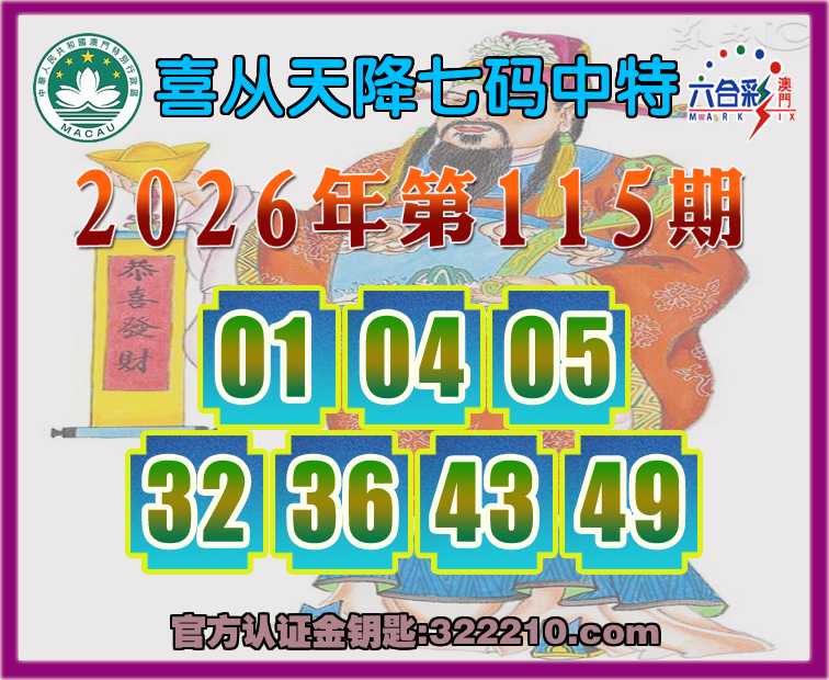 115期:【喜从天降】 ⛩️七码中特⛩️【01.04.05.32.36.43.49】开:04