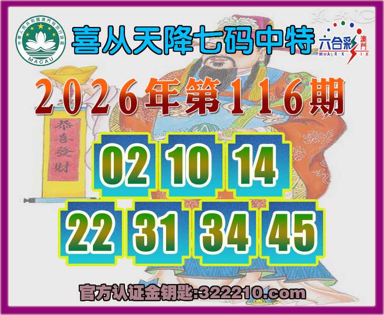 116期:【喜从天降】 ⛩️七码中特⛩️【02.10.14.22.31.34.45】开:22