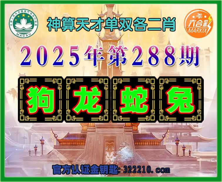 主题: 288期:金钥匙高手【神算天才🔥单双各二肖】正版澳彩