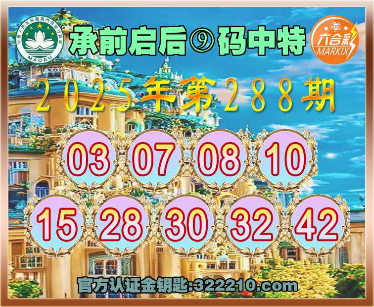 主题: 288期:金钥匙高手【承前启后🔥⑨码中特】正版澳彩