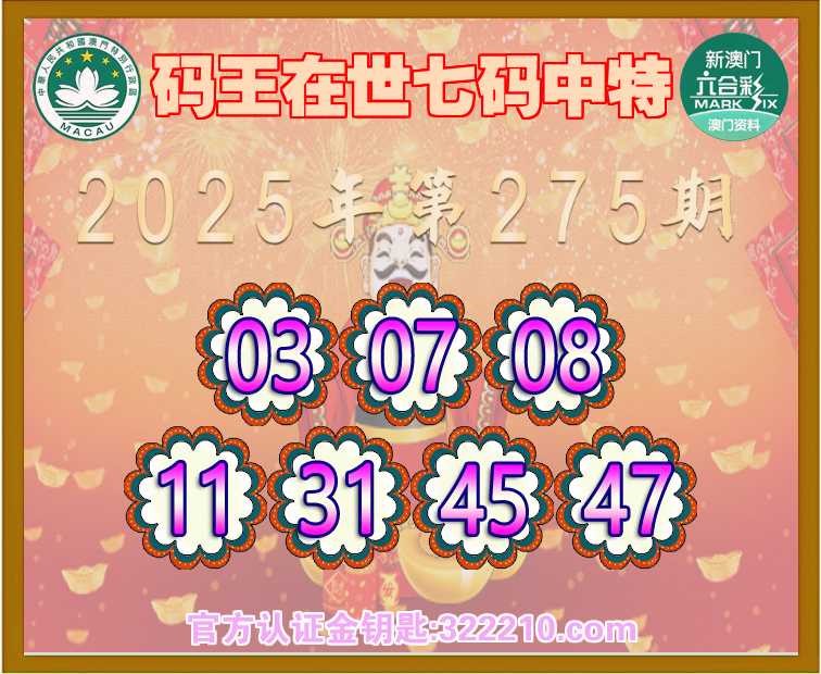 275期:『码王在世』 👉七码中特👉【03.07.08.11.31.45.47】开:45