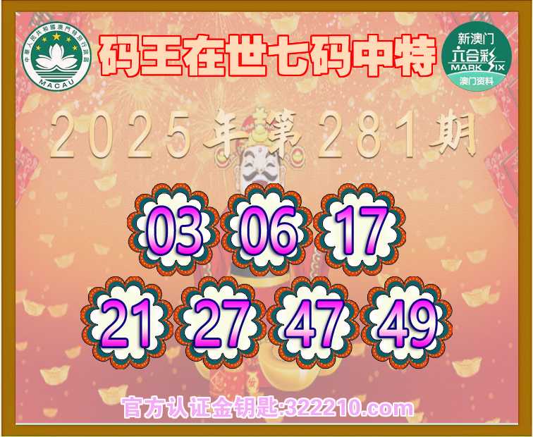281期:『码王在世』 👉七码中特👉【03.06.17.21.27.47.49】开:47
