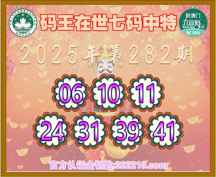 282期:『码王在世』 👉七码中特👉【06.10.11.24.31.39.41】开:41