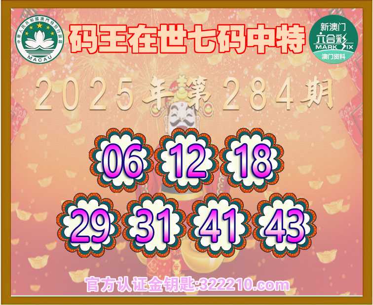 284期:『码王在世』 👉七码中特👉【06.12.18.29.31.41.43】开:41