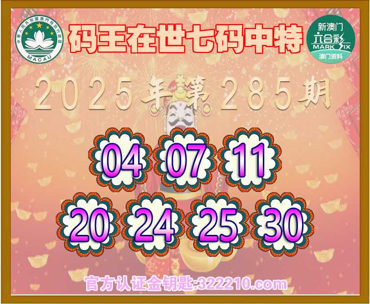 285期:『码王在世』 👉七码中特👉【04.07.11.20.24.25.30】开:24