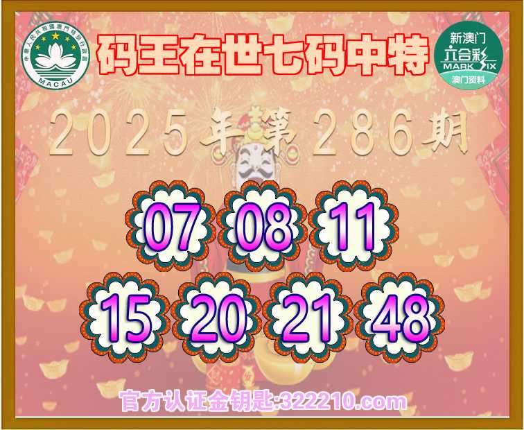 286期:『码王在世』 👉七码中特👉【07.08.11.15.20.21.48】开:03