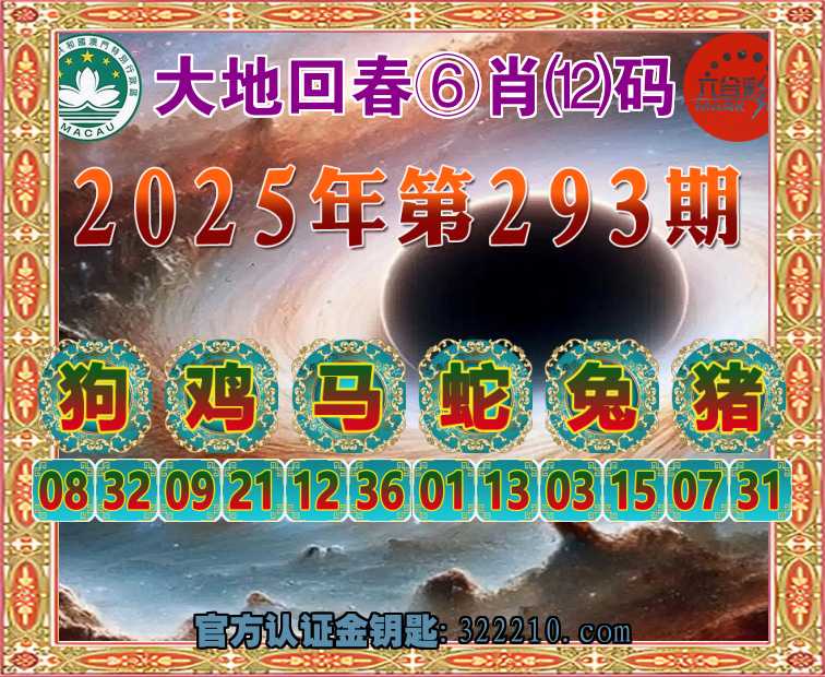 主题: 293期:金钥匙高手【大地回春🔥⑥肖⑿码】正版澳彩