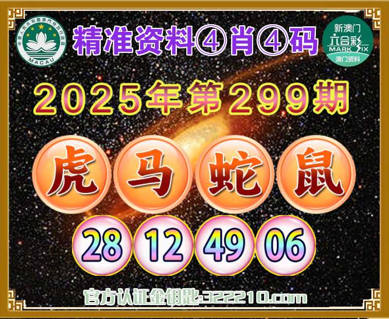 299期: 精准资料 🍙④肖④码🍙【虎马鼠】【28.12.49.06】开:蛇49