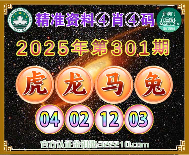301期: 精准资料 🍙④肖④码🍙【虎龙马兔】【04.02.12.03】开:00准