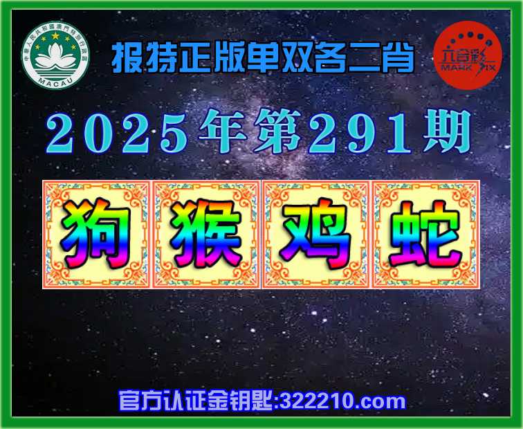 291期:『报特正版』 ☝️单双各二肖☝️【.猴.鸡.蛇】开:狗44