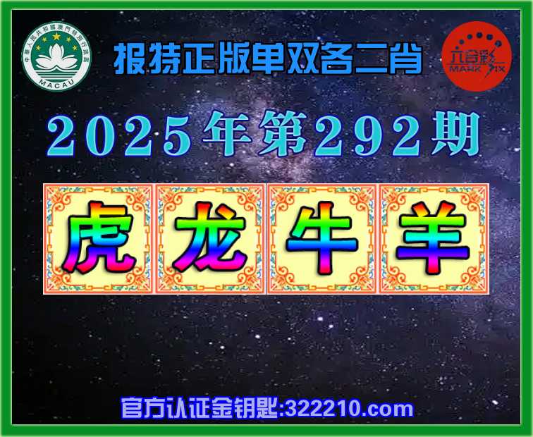 292期:『报特正版』 ☝️单双各二肖☝️【虎..牛.羊】开:龙02