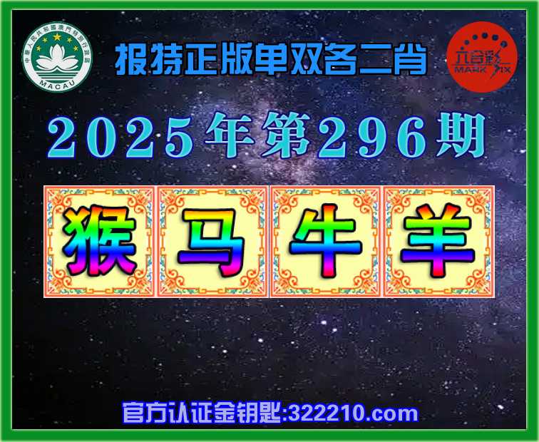 296期:『报特正版』 ☝️单双各二肖☝️【.马.牛.羊】开:猴22