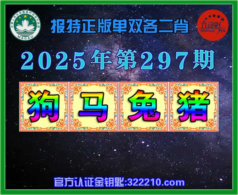 297期:『报特正版』 ☝️单双各二肖☝️【.马.兔.猪】开:狗44