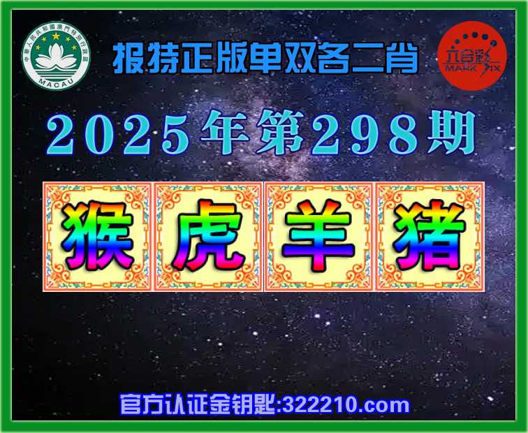 298期:『报特正版』 ☝️单双各二肖☝️【猴.虎..猪】开:羊23