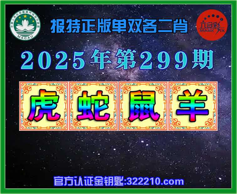 299期:『报特正版』 ☝️单双各二肖☝️【虎..鼠.羊】开:蛇49