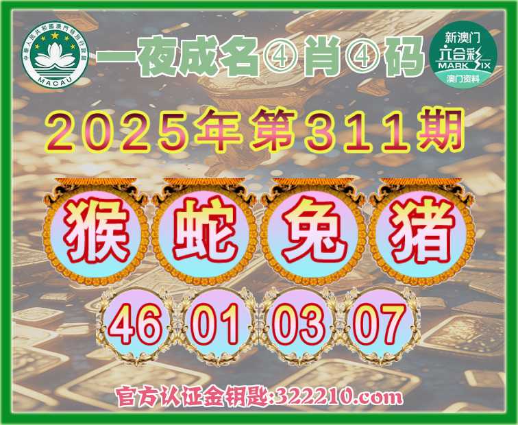 311期:《一夜成名》 🎯④肖④码🎯【猴兔猪】【46.01.03.07】开:蛇37