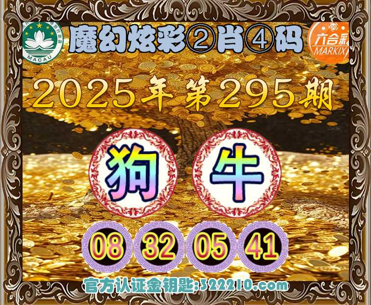 295期:『魔幻炫彩』 🎉②肖④码🎉【狗】【08.32.05.41】开:牛05