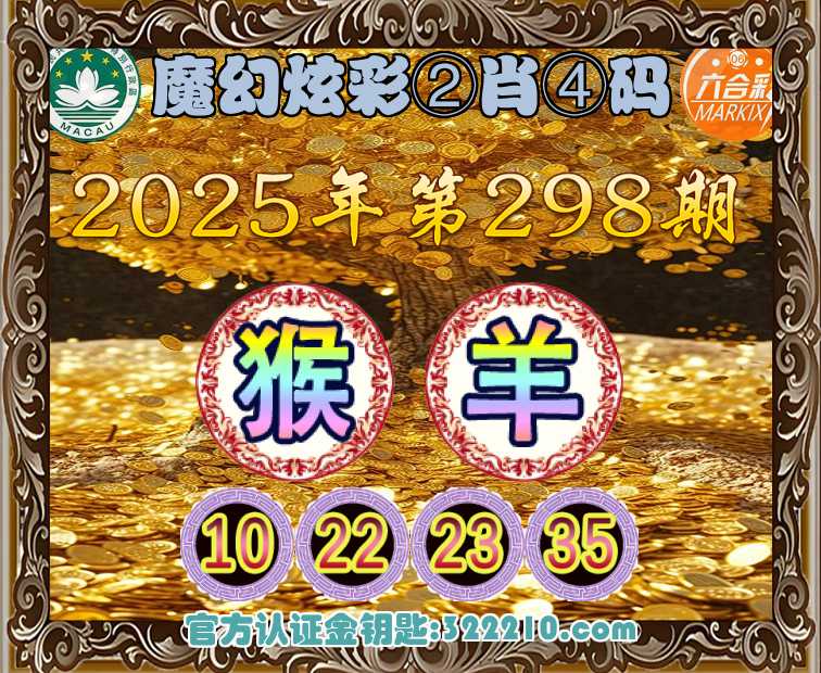 298期:『魔幻炫彩』 🎉②肖④码🎉【猴】【10.22.23.35】开:羊23