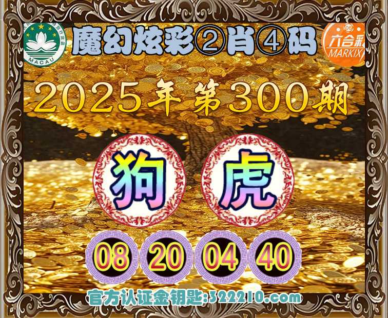300期:『魔幻炫彩』 🎉②肖④码🎉【狗】【08.20.04.40】开:虎40