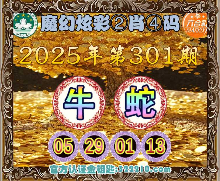 301期:『魔幻炫彩』 🎉②肖④码🎉【蛇】【05.29.01.13】开:牛05
